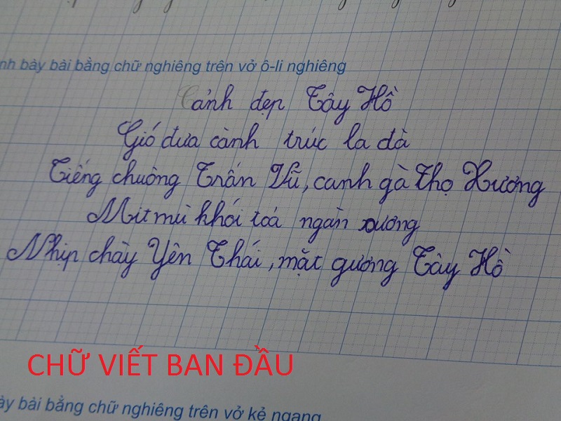 Nếu muốn viết nhanh, hãy để 3 ngón tay "chết" thành 3 ngón tay "củ gừng " nhé ! Ảnh chụp hs lớp 8 lên lớp 9 sau 05 buổi sửa chữ. Liên hệ học nghề rèn chữ. Cô Nguyễn Thị Trà Ly 0975.699.600 - Cầu Giấy - Hà Nội http://chudepnethoa.com