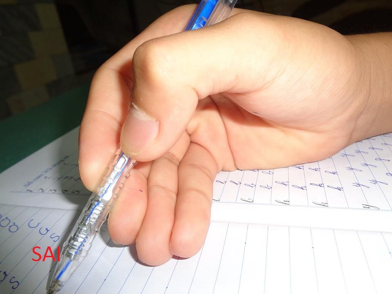 Năm nay có khá nhiều học trò tới luyện viết nhanh - kiểu chữ nghiêng trên giấy kẻ ngang. Phải sửa được cách cầm bút sai là : 3 ngón tay "chết ": ngón út, áp út, ngón giữa . Học trò sẽ để 3 ngón tay đó theo kiểu "củ gừng". Nhìn hình, các bạn sẽ rõ. Học trò sẽ viết nhanh bởi vì 3 ngón tay "chết" chẳng khác gì là những khúc gỗ chặn ngang dòng suối chữ đang chảy. Hãy khơi thông dòng chảy của chữ bằng cách để lại 3 ngón tay.